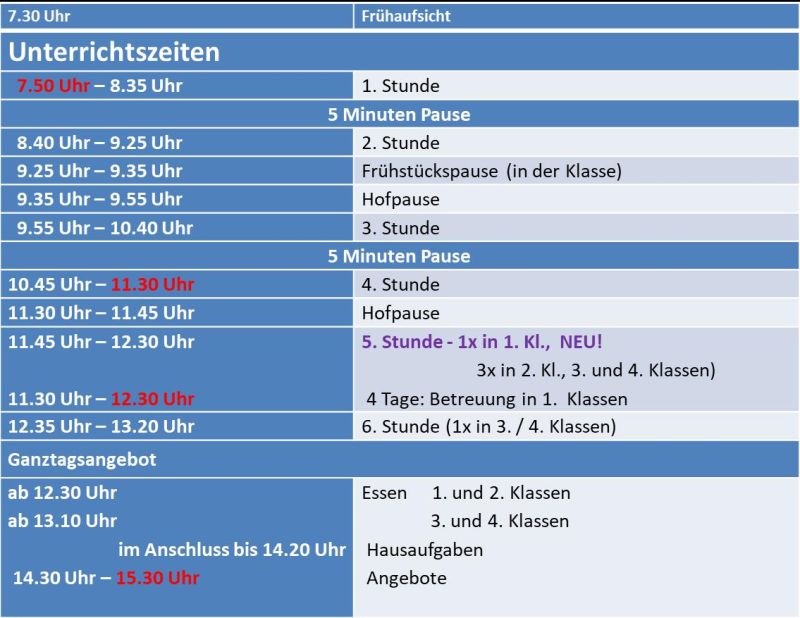 Unterrichtszeiten