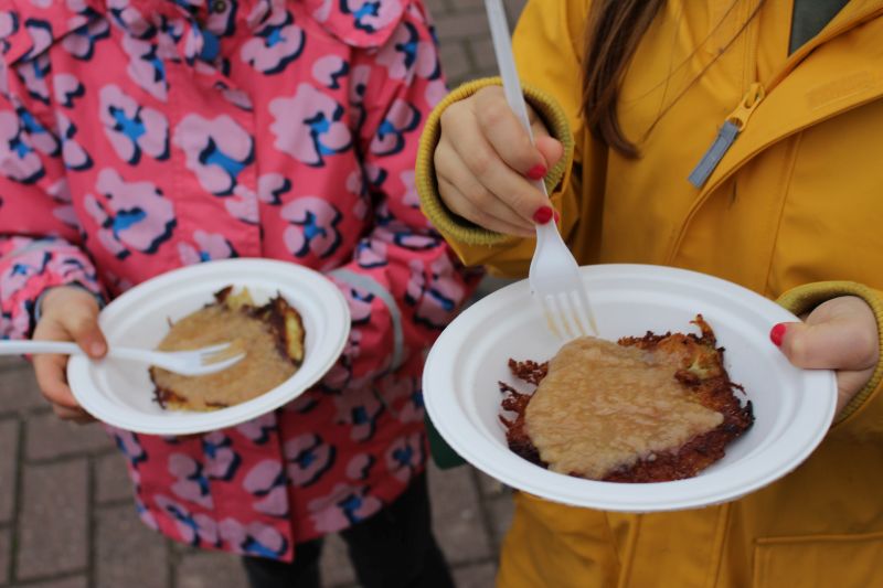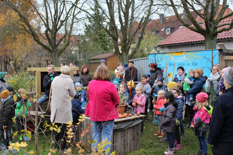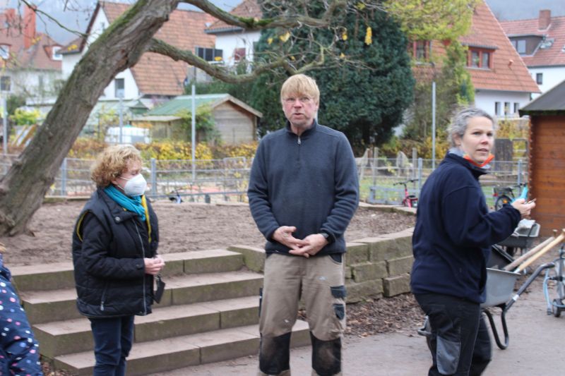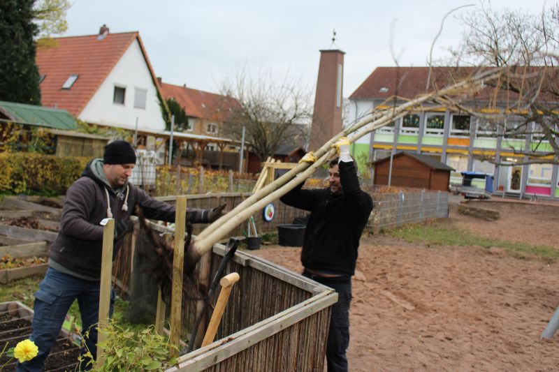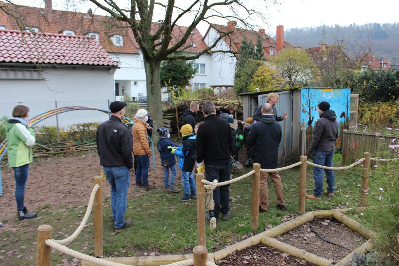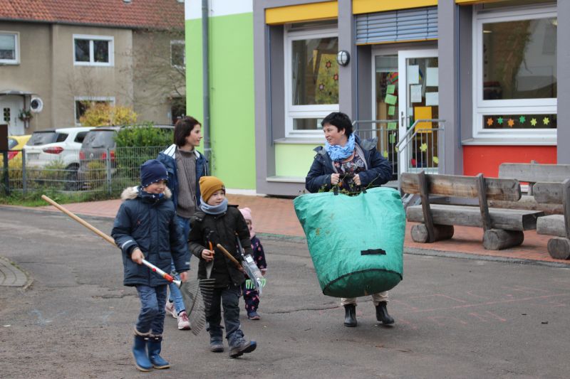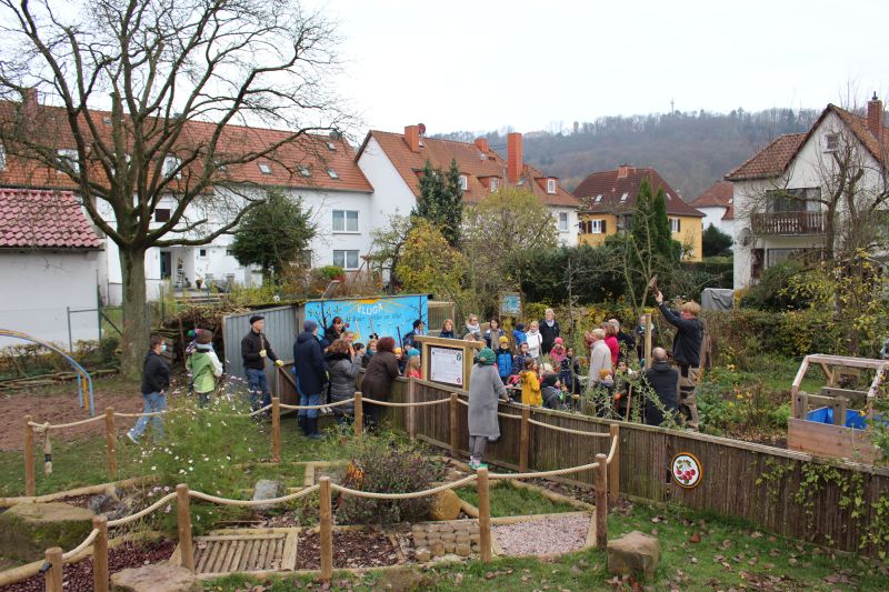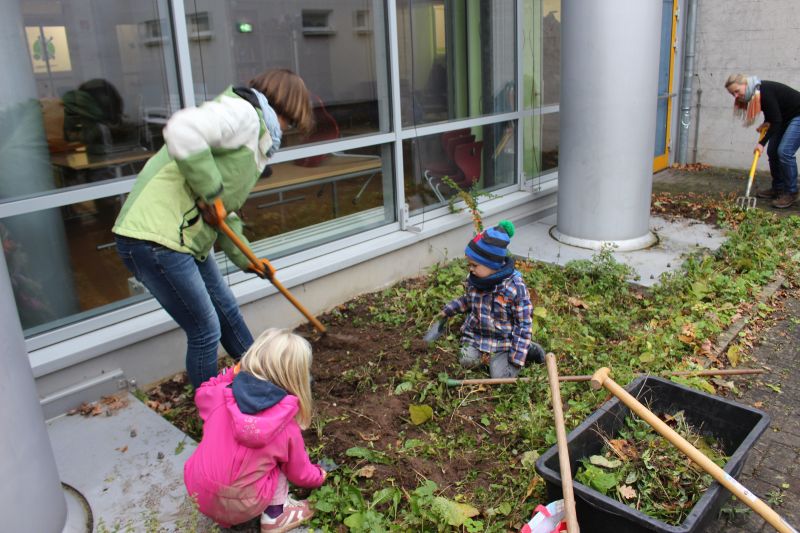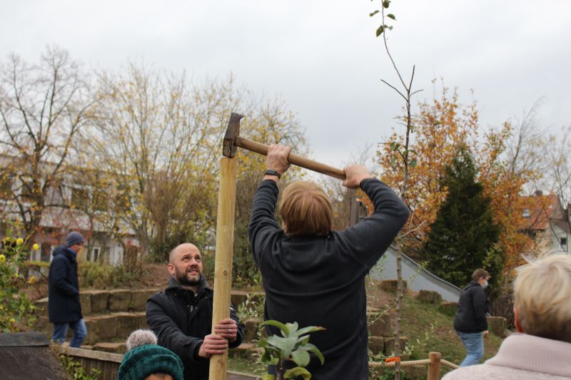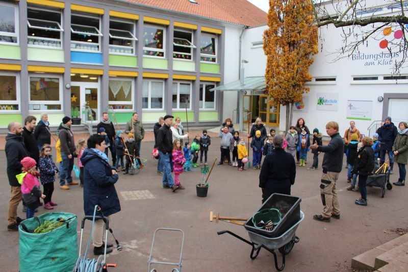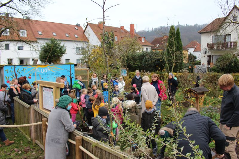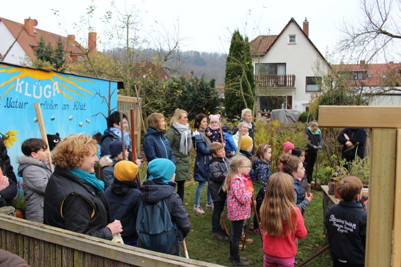 Die Stadt Hameln fragte an, ob unsere Schule Interesse an der Pflanzung und Verwendung von Apfelbäumen im Zuge des Unterrichts hat und daher gerne an dem Projekt „Apfelbäume für Hamelner Schulen“ teilnehmen möchte. An diesem Projekt beteiligt sind außer der Stadt Hameln auch die Stadtwerke und der Rotary Club. Natürlich hatten wir uns gemeldet und freuten uns, als am 19.11. die Apfelbäume geliefert wurden. Mit reichlich Unterstützung des 2. Jahrgangs wurden sie in unserem Schulgarten gepflanzt. Neben der Pflanzung wurde Schulhof und Schulgarten gefegt, geharkt und die Beete mit reichlich Laub winterfest gemacht. Große Freude kam auf, als zur Stärkung Frau Thiel gemeinsam mit ihrem Mann Kartoffelpuffer anbot, angereichert mit Kürbis aus dem Schulgarten. Es war mal wieder eine Aktion mit viel guter Laune. Herzlichen Dank für die Apfelbaumspende und an all die vielen fleißig helfenden Hände.
