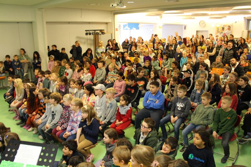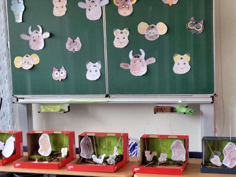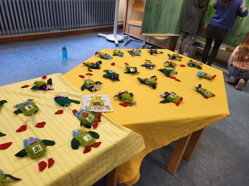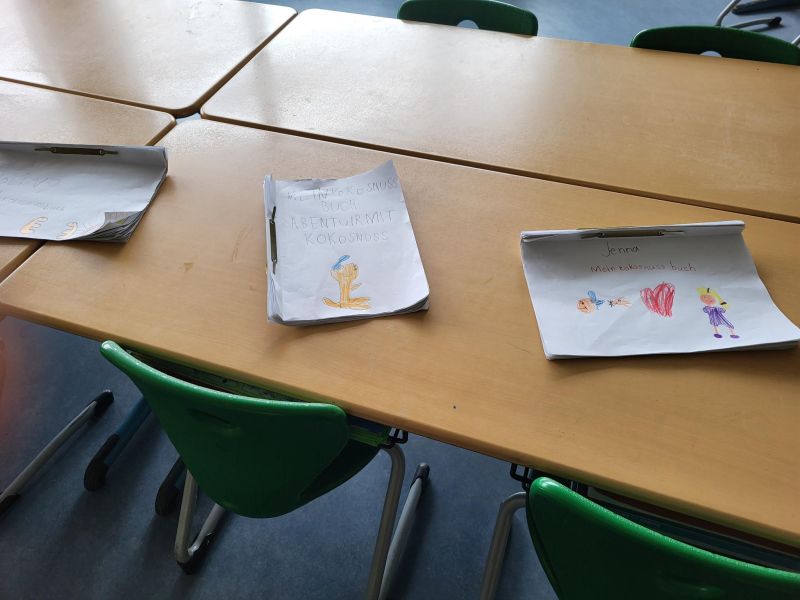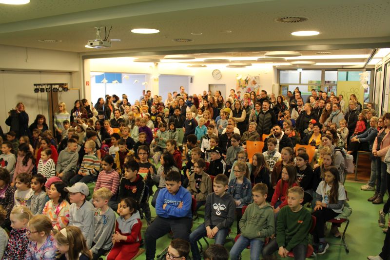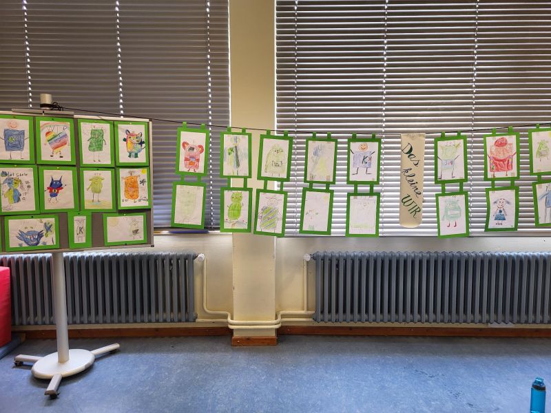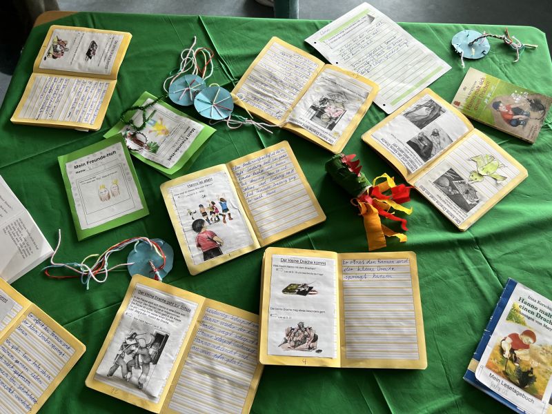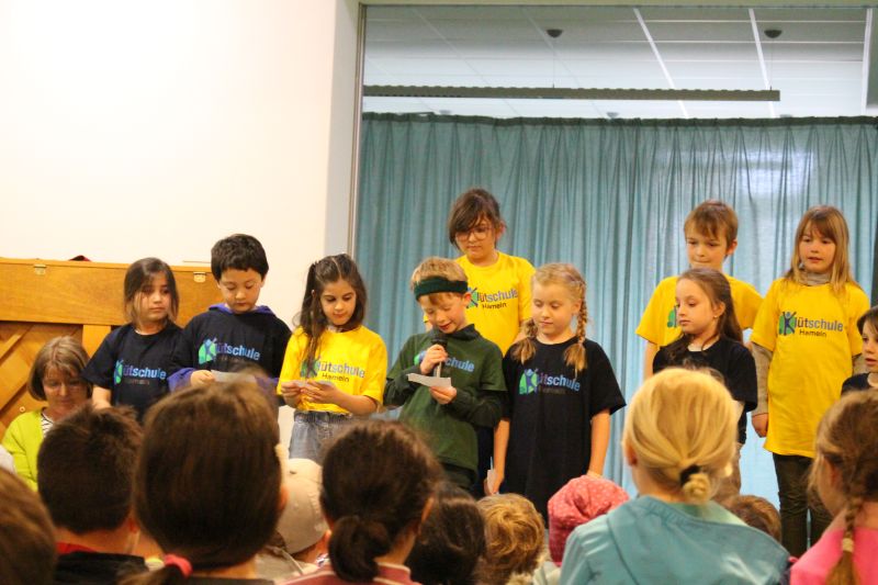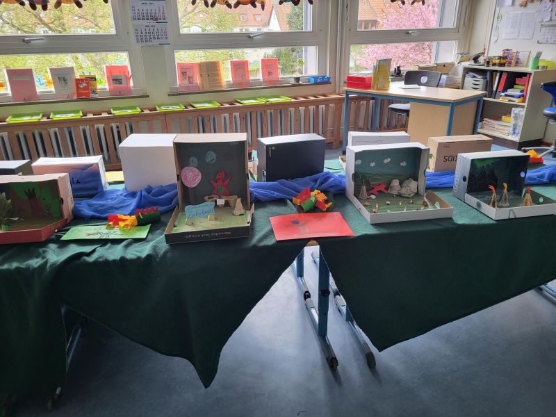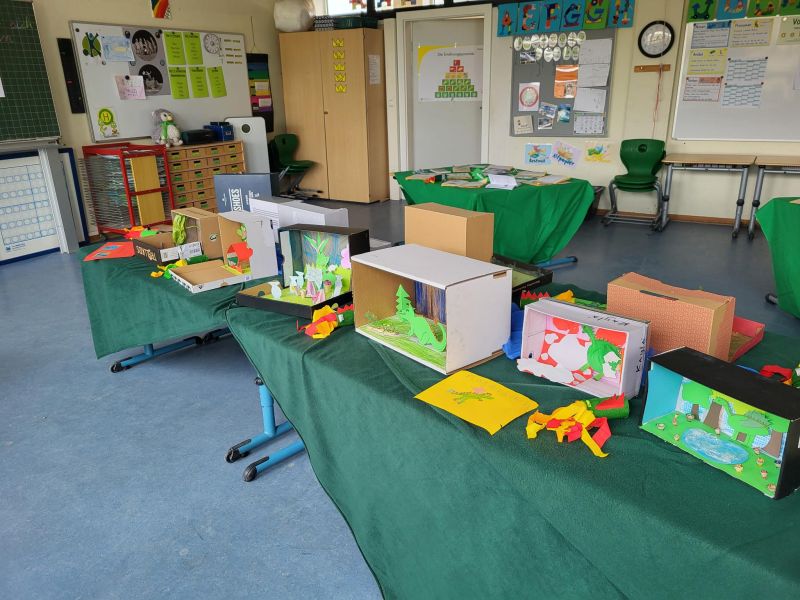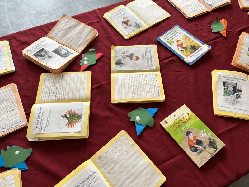 In unserer Projektwoche zum Thema “Rund um Bücher” wurde gelesen, geschrieben, geredet, gemalt, gebastelt, gefilmt, gesungen, Musik gemacht, getanzt, gekocht, gespielt, gehämmert, gegessen. Durch das ganze Schulgebäude wehte ein fröhlicher und engagierter „Bücher-Geist“, der alle mitnahm. Viele Ergebnisse aus dieser Woche konnten wir dann den Eltern und allen Interessierten am Freitag Nachmittag zeigen. Das ganze Schulgebäude war voller Menschen, die herumgingen und in die Klassenräume schauten. Eine spannende Woche mit einem wunderschönen Abschluss!