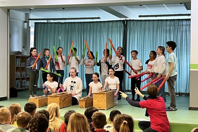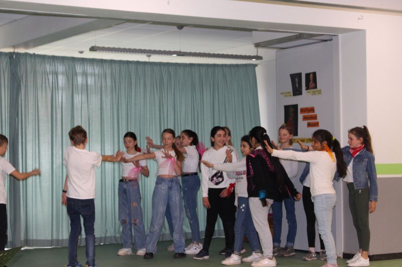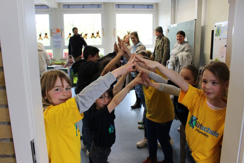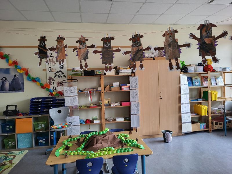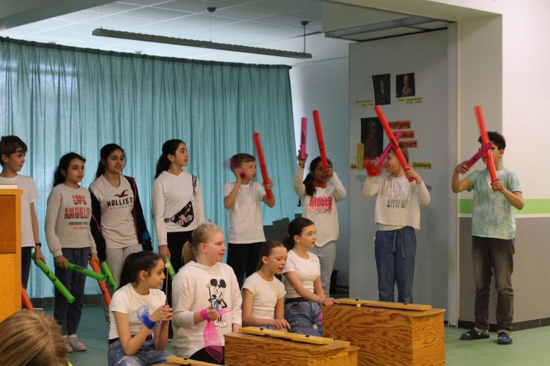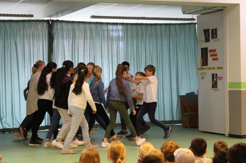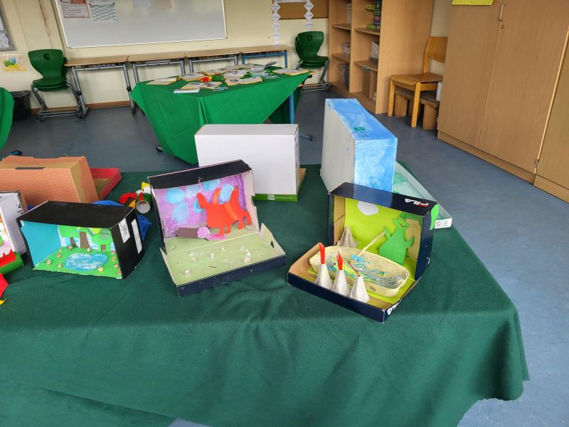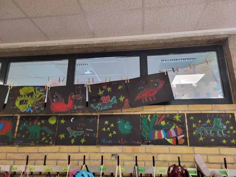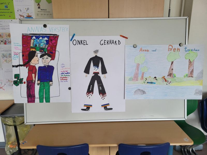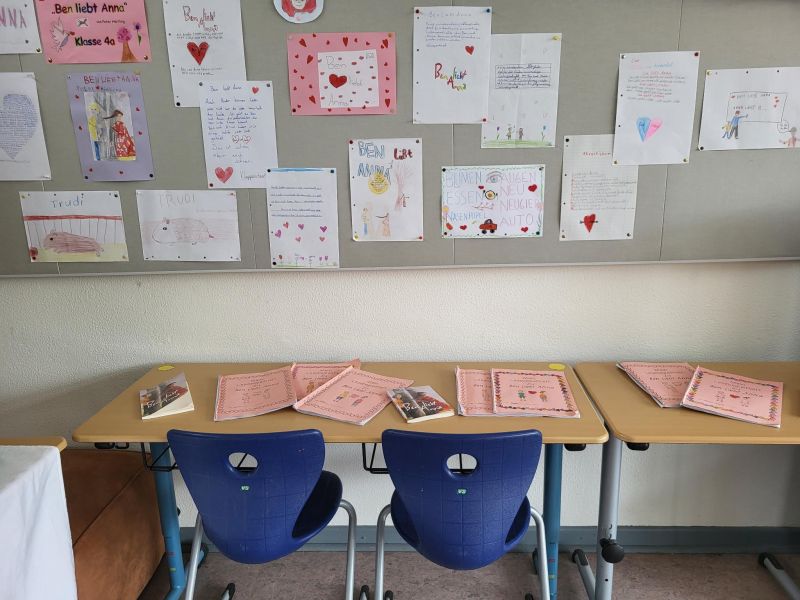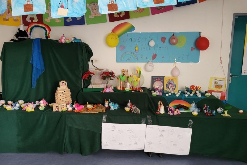 In unserer Projektwoche zum Thema “Rund um Bücher” wurde gelesen, geschrieben, geredet, gemalt, gebastelt, gefilmt, gesungen, Musik gemacht, getanzt, gekocht, gespielt, gehämmert, gegessen. Durch das ganze Schulgebäude wehte ein fröhlicher und engagierter „Bücher-Geist“, der alle mitnahm. Viele Ergebnisse aus dieser Woche konnten wir dann den Eltern und allen Interessierten am Freitag Nachmittag zeigen. Das ganze Schulgebäude war voller Menschen, die herumgingen und in die Klassenräume schauten. Eine spannende Woche mit einem wunderschönen Abschluss!