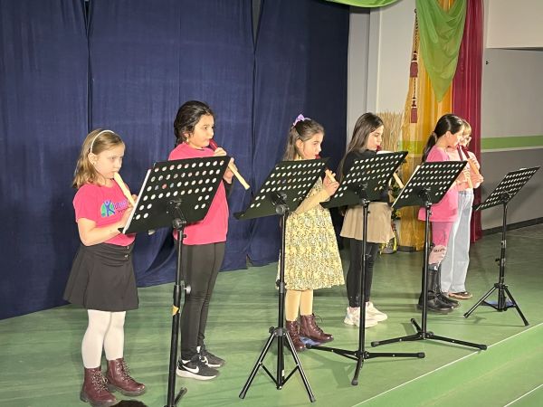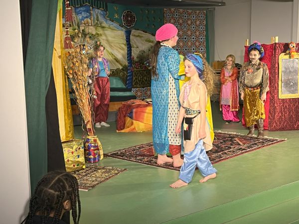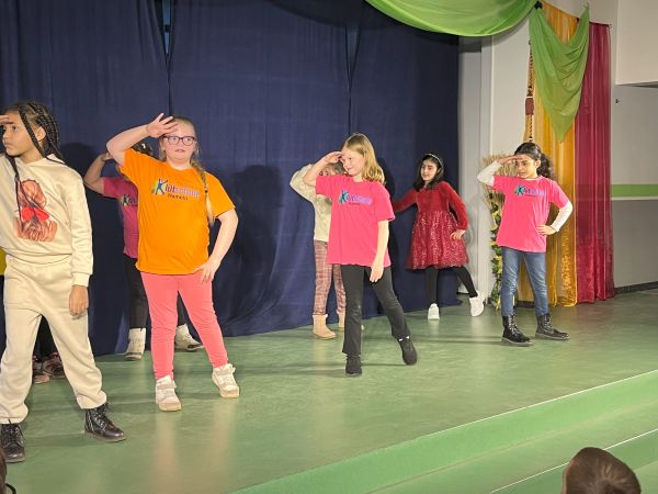 Es gab die Die HipHop-Gruppe aus dem Ganztag mit rhythmischen Tanzchoreographien, die Flötengruppe hat einige Lieder gespielt, Kinder aus dem Schulchor haben einige Lieder teils mit „body percussion“ vorgetragen und die Theater-AG hat das Stück „Der Geist aus der Flöte“ aufgeführt.