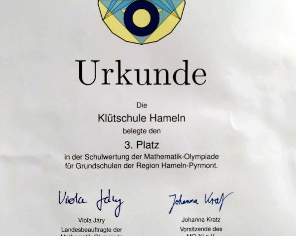 Startseite » Viel los an der Klütschule » Urkunden Matheolympiade